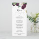Este moody cartão de janto de casamento roxo é perfeito para um casamento moderno. O elegante design floral apresenta flores púrpura de ameixa escura e tulipas brancas com folhas verdes esmeraldas e sotaques dourados. Este menu pode ser usado para recepção de casamento, janto de ensaio ou qualquer evento.