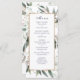 Todo o texto pode ser personalizado neste menu de casamento. O design de folha Primavera de de aquarela e o menu de quadro de ouro fazem parte de uma coleção de casamento.