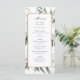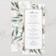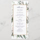 Todo o texto pode ser personalizado neste menu de casamento. O design de folha Primavera de de aquarela e o menu de quadro de ouro fazem parte de uma coleção de casamento.
