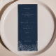 Cartões de menu de Mesa floral de marinho de flor selvagem azul 4x9" Cartões de floral Menu Jantado na caligrafia moderna de script. Você pode encontrar uma coleção de itens correspondentes e tamanho 5x7 em nossa loja VelvetPaperCo.