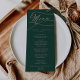 Este cartão de janto de casamento para caligrafia verde romântica é perfeito para um casamento simples. O clássico moderno design apresenta espirais de rico e turbilhões brancos com belíssima e elegante tipografia de folha de ouro de champanhe com letra falsa. Este menu pode ser usado para recepção de casamento, janto de ensaio ou qualquer evento. Nota: Este design não apresenta folha de ouro real. É um gráfico de alta qualidade feito para se parecer com folhas de ouro.
