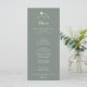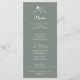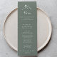 Este cartão verde de janto da montanha da silhueta branca é perfeito para um casamento rústico. O design apresenta montanhas limpas pintadas manualmente. Este menu pode ser usado para recepção de casamento, janto de ensaio, chá de panela ou qualquer evento.