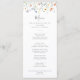 Este cartão multicolorido de janto floral é perfeito para um casamento rústico. A design apresenta flores elegantes, cor-de-água, cor-de-rosa, pincelada, roxa, marinho e branca, com folhas verdes esmeraldas. Este menu pode ser usado para recepção de casamento, janto de ensaio, chá de panela ou qualquer evento.