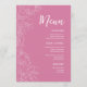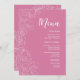 Cartão de menu floral cor-de-rosa. Elegante design moderno com desenhos botânicos desenhados em destaque e letra de script de tipografia. Cartão de menu plano de tendência 5x7 perfeito para uma celebração de na moda.