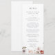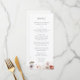 Este simples cartão de janto floral é perfeito para um casamento rústico. O design bicho-branco apresenta flores rosadas, rosas, burgundy e marsala rochosas e roxas rústicas. Este menu pode ser usado para recepção de casamento, janto de ensaio ou qualquer evento.