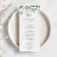 Este cartão de janto de folhagem verde para escrita em caligrafia é perfeito para um casamento moderno. O design apresenta galhos e folhas botânicas elegantes e desenhadas a aquarela, desenhadas à mão, em belos buquês e padrões geométricos. Este menu pode ser usado para recepção de casamento, janto de ensaio, chá de panela ou qualquer evento.