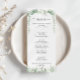 Este cartão de menu de janto de eucalipto minimalista geométrico é perfeito para um casamento moderno. O design apresenta galhos e folhas botânicas elegantes e desenhadas a aquarela, desenhadas à mão, adornando quadros geométricos. Este menu pode ser usado para recepção de casamento, janto de ensaio, chá de panela ou qualquer evento.