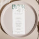Este cartão de janto de eucalipto verde minimalista é perfeito para um casamento rústico. A design apresenta uma coloração aquosa elegante folhas verdes de eucalipto. Este menu pode ser usado para recepção de casamento, janto de ensaio, chá de panela ou qualquer evento.