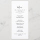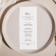 Este simples cartão de janto minimalista é perfeito para um casamento moderno. O design simples e elegante apresenta a tipografia de scripts clássicos e ricos em preto e branco. Este menu pode ser usado para recepção de casamento, janto de ensaio, chá de panela ou qualquer evento.