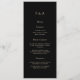 O muçulmano muçulmano Nikah Wedding Mesa Card com um fundo preto simples e mínimo com um guião de ouro tradicional roman goudy e tipografia ousada e goudy. Você pode personalizar as iniciais do monograma do casal e editar todas as informações de itens de comida halal que estão escritas com a Ferramenta Design. Moderno. Formal. Ouro. Modelo editável. HerLineForDesignStudio por Ayesha.