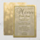 Este elegante menu de janto em tons de luzes do ouro pode ser personalizado. Você pode alterar a fonte e as cores da maioria do texto. Concebido por Amelia Carrie e vendido exclusivamente através de GlitterInvitations.com Nota: Esta é uma reprodução gráfica de impressão ou trabalho de arte e não contém nenhuma falha.