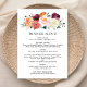 O design de cardápio de janto de casamento apresenta um texto na moda que pode ser completamente personalizado, acentuado por um verão rústico e cair no design de aquarela floral com belos rosas, dahlias, flores de pénia, e verde, numa bela paleta de outono de vermelho-lenhoso, amarelo-ouro, laranja-cor-de-pêssego, rosa-pincel e tons de verde. Uma cor vermelha de fundo entorpecida com uma aparência texturizada veste-se na parte de trás do cartão.