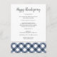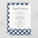 Adicione um toque de acabamento personalizado à sua Ação de Graças, à sua refeição de Natal ou de ocasião especial com estes lindos menus impressos jantados, com uma elegante inscrição caligráfica e uma borda inferior de marinho azul e xadrez de búfalo branco pintados à mão rústica.