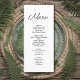 Menu de janta de recepção de casamento moderna, com um design boho simples e uma inscrição personalizável. Excelente para planejar uma refeição elegante para seu dia especial.