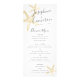 O sotaque de ouro moderno sobe um cartão de menu simples e elegante para casamentos de praia tropical e festas de janto de praia. DICAS DO DESIGNER: Clique em PERSONALIZAR AINDA MAIS para alterar a cor do plano de fundo, as fontes e a disposição do texto. Visite o compro Zazzle de Trabalho Personalizado para coordenar papelaria e decoração para o seu casamento de destino de praia tropical. Dourado é uma imagem impressa, não uma folha de ouro verdadeira.