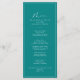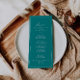 Este cartão de cardápio jante de caligrafia na moda idílica geométrica é perfeito para um casamento simples. O design simples e elegante apresenta a tipografia de scripts clássicos e de rico num fundo teal. Este menu pode ser usado para recepção de casamento, janto de ensaio, chá de panela ou qualquer evento.