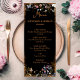 Adicione um toque elegante à sua recepção com nosso menu de casamento Boho Floral Black Butterfly Garden. Projetado para um casamento noturno, este menu apresenta um pano de fundo preto adornado com flores silvestres e borboletas delicadas. O design floral vintage e a estética do boho criam um olhar encantador e sofisticado, fazer-o como um ajustado perfeito para o seu casamento no jardim ao ar livre.