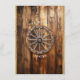 Fundo de madeira rústico country com luzes de jarro de pedra penduradas em cordão de luzes, velha roda de carroça de madeira com laço de aniagem e borda de corda ocidental antiga.
