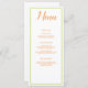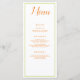 Um design de inspiração de queda laranja e verde, este menu de recepção de casamento apresenta um adorável fundo branco com fonte laranja. Com "Menu" escrito no topo usando uma fonte laranja cursiva, todas as suas informações são impressas em uma fonte legível a laranja em um plano de fundo branco. Personalize como quiser.