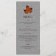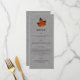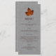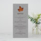 Uma folha de mapa laranja subtilmente monificada, num fundo ilustrado de linho, decora este menu, fazer-o perfeito para um casamento de outono, evento ou Ação de Graças,