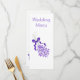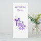 Design do menu de janto de casamento. Personalize este menu colorido de lavanda com os detalhes do seu casamento. Se precisar de ajuda para personalizar, entre em contato conosco através do link desta página. menu de janto personalizado de casamento da design lavanda