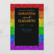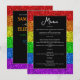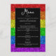A bandeira LGBT do arco-íris faz brilhar o Menu do casamento lésbico. Bem-vindos à alegre celebração do amor entre duas lindas almas. Tão vibrante e radiante quanto a própria bandeira LGBT. Adotar a singularidade e estilização da estacionaria de casamento do mesmo gênero com os brilhantes brilhos de cor arco-íris, brilhando em matizes vibrantes vermelho, laranja, amarelo, verde, azul e roxo. Que esta exibição brilhante simbolize a unidade e a igualdade de todo o amor, transcendendo fronteiras e brilhando intensamente para todos verem. À medida que embarcarmos nesta jornada juntos, que o vosso amor continue a brilhar e a iluminar o mundo à vossa volta. *Foto de faíscas não é uma falha real!