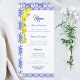Este maravilhoso menu mostra um belo trabalho de arte de aquarela de limoeiros sobre um pano de fundo do azulejo da Costa Amalfi da Itália. Com um clique de um botão, você pode mudar facilmente os itens do menu.