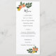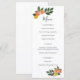 Um cartão de cardápio perfeito para um casamento ou chá de fraldas de almoço. Com limões, laranjas e verde. Personalize com o texto do menu para um brunch, almoço ou janto.