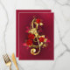 Limpa de ouro, decorada com rosas vermelhas e folhas de ouro em fundo texturizado.