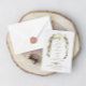 Convite de casamento elegante e na moda com flores de aquarela em tons neutros e matizes, assim como folhagem verde-esmagadora. Parte da nossa coleção de casamento "Lindos Florais".