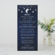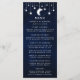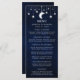 Cartão Celestial De Menu De Casamento. Céu azul de água com estrelas e a lua. Luzes de cordas.