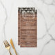 Cartão de menu de casamento floral com luzes de corda elegantes com nomes de estilo de assinatura, este cartão de menu moderno pode ser personalizado com suas informações em letras brancas elegantes em um fundo de madeira rústica. Projetado por Thisisnotme©