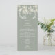 Com belas luzes de corda e ilustrações desenhadas à mão de guirlanda floral rústica, personalize este menu elegante verde sage com as informações do menu do seu dia especial de casamento. Criado por Thisisnotme©