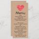 Menu à moda da recepção de casamento do olhar do artesanato, com gráficos de um fundo marrom do papel do artesanato e de um coração de papel do mosaico, na parte superior. Personalize todo o texto para seu dia especial. Os produtos de harmonização estão disponíveis.