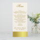Menu magro elegante da mesa da recepção de casamento, feito no marfim, com os gráficos da banda goldtone ao longo da parte inferior, e de cobrir a parte traseira. O texto feito sob encomenda feito em um marrom dourado está pronto para personalizar para sua recepção de casamento. Adição bonita a nosso grupo goldtone à moda do casamento.