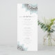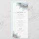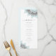 Um padrão de mandala legado em um gradiente de azul-ovo e cinza quente do soft robin junto com texto de script fluindo dá a esta elegante suíte de casamento que é luxuoso. O menu de casamento mostrado aqui com mandalas de canto em branco, azul de ovo do robin, permite que você edite facilmente os detalhes do menu de recepção usando o modelo fornecido. Procure ID968 para ver todas as peças correspondentes neste belo conjunto de casamento.
