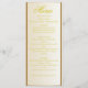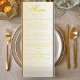 Traga um toque de eterno para sua recepção de casamento com este marfim elegante e cartão amarelo de cardápio. Projetado com tons suaves e uma fonte refinada amarela-ouro, este menu clássico é perfeito para casamentos tradicionais, românticos ou formais. Totalmente personalizável - edite nomes, data, local e detalhes de refeições para corresponder à sua celebração. Uma bela maneira de adicionar um acabamento polido à sua mesa.