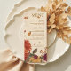 Elegante cardápio de casamento ruidoso com flores marigold, crisântemum, e dahlia floral outono com fronteira vintage. Cor de laranja quente, burgundy, tons de ouro e folhas de outono combinam-se com bege para design de cor de água botânica. O estilo romântico da boêmia é perfeito para as recepções de primavera, verão ou quedas com sotaques de terracota e laranja queimados.