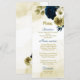Menu Marinho azul de marfim de ouro floral casamento