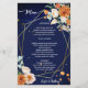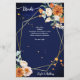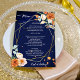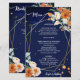 Laranja e rosas brancas sábio eucalipto verde marinho azul de fundo ouro geométrico quadro floral modelo com lista de bebidas no verso, se você não tiver bebida, pode utilizar para escrever programa, ou outra coisa, ou deixá-lo vazio.