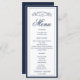 Eleve a sua recepção de casamento com este marinho azul Elegante e Botânico Crest Monograma Menu Casamento, projetado para impressionar com a sofisticação do eterno. Com uma paleta de cores escura e branca elegante, este menu mostra o seu monograma personalizado envolto numa delicada crista botânica no topo, acrescentando um toque personalizado e refinado às suas definições de mesa.