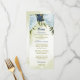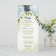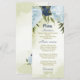 Belo cartão de cardápio de casamento com marinhos e flores azuis empoeiradas e folhas verdes Os detalhes da relva de ouro são simulados. PARA MAIS PRODUTOS CORRESPONDENTES, clique na coleção acima ou entre em contato comigo