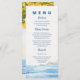 Impress guests at the reception with this Mediterranean Lemon Grove Wedding Menu Card, featuring beautiful watercolor lemons and an ocean horizon. Ideal for coastal, outdoor, summer, or Amalfi-themed weddings. Personalize your courses to match your event perfectly.
