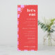 Este cardápio de casamento ousado e brilhante, com um padrão bonito com arco e texto editável, faria uma maravilhosa adição à sua festa! Altere facilmente o texto clicando na opção "personalizar este modelo".