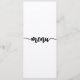 Este cartão elegante de menu de caligrafia vai tornar sua data mais especial! Todos os títulos do curso de menu, descrições de comidas, Nomes, Data, "Aproveite!" são editáveis.