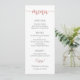 Este cartão elegante de menu de caligrafia vai tornar sua data mais especial! Todos os títulos do curso de menu, descrições de comidas, Nomes, Data, "Aproveite!" são editáveis.