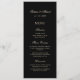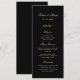 Menu de Mesa Mínima de Casamento Muçulmano Islâmico para colocar a mesa de janto para os hóspedes que participam deste evento especial. Este cartão tem um plano de fundo preto simples e formal com letra clássica de caligrafia de script em ouro escrita. Você pode personalizar os nomes da noiva e do noivo, a data do casamento ou de outro evento e editar as informações de comida halal que são mostradas. Moderno. Ouro. Escolha o tipo de papel para torná-lo exclusivo para você. Modelo editável. Sua Linha para o Design Studio no Zazzle.