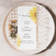 Cartão de menu minimalista de girassol elegante com aquarela. Itens correspondentes disponíveis. Verifique a coleção.