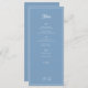 Fundo azul-usky para design simples, mas elegante, baseado na tipografia. rodapé do monograma do casal. Texto branco em azul-escuro médio sólido com borda fina. Inverte para cor sólida. A placa de menu tem emparelhamento de fonte Reprodutiva.