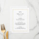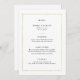 Este moderno e elegante menu de casamento contém um simples texto preto sobre um fundo branco, com uma falsa estrutura dourada.